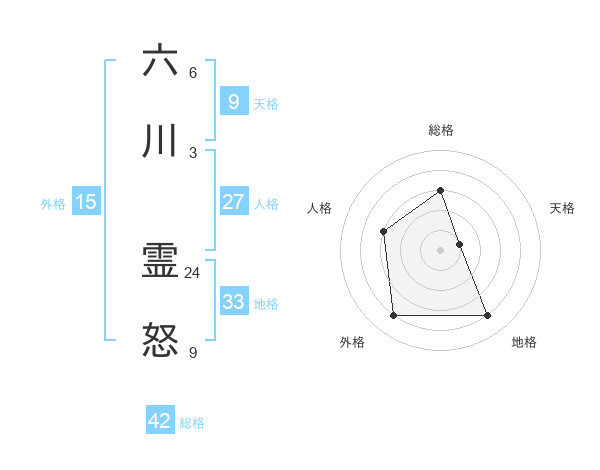 六川 霊怒さんの総格は42画の3点!