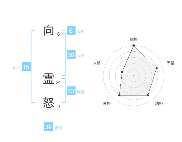 向 霊怒さんの総格は39画の5点!