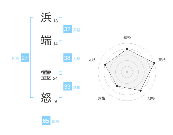 浜端 霊怒さんを姓名の画数から五運を鑑定