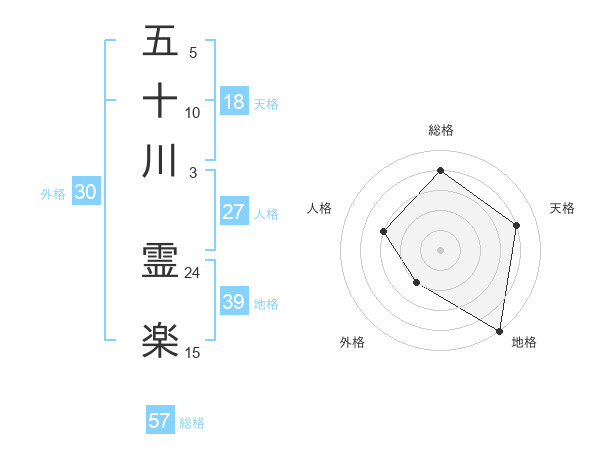 五十川 霊楽さんを姓名の画数から五運を鑑定