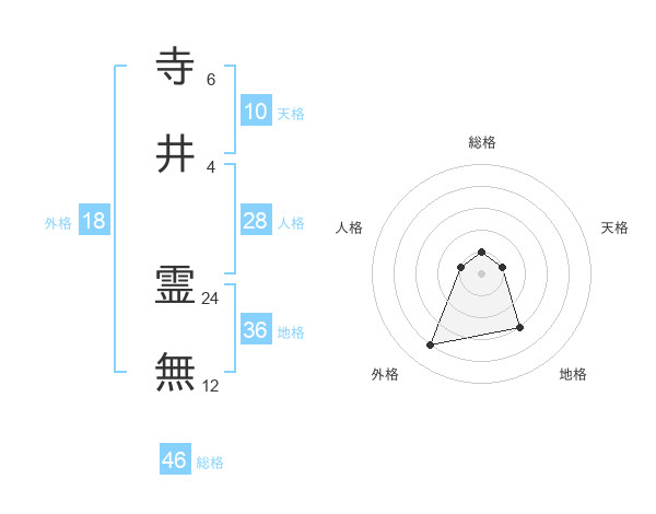 寺井 霊無さんの総格は46画の1点!