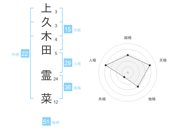 上久木田 霊菜さんを姓名の画数から五運を鑑定