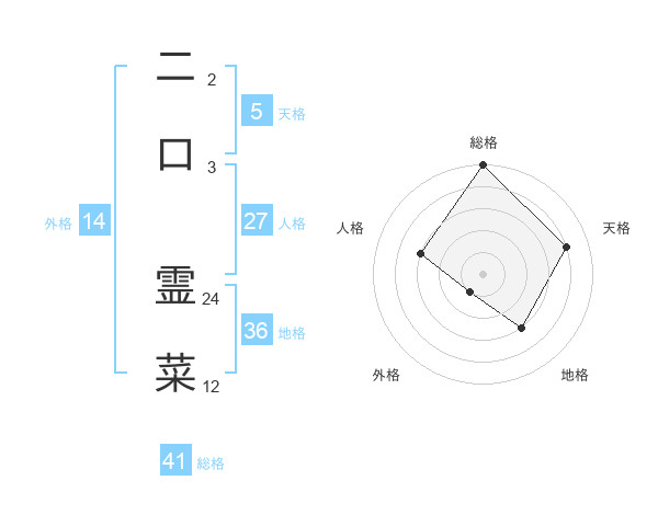二口 霊菜さんの総格は41画の5点!