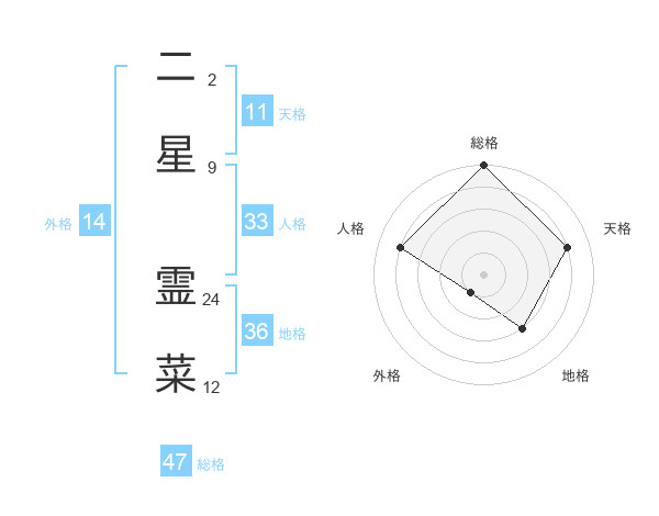 二星 霊菜さんの総格は47画の5点!