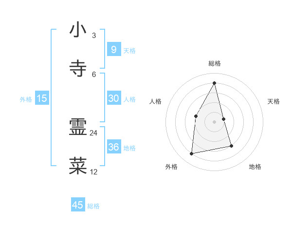 小寺 霊菜さんを姓名の画数から五運を鑑定