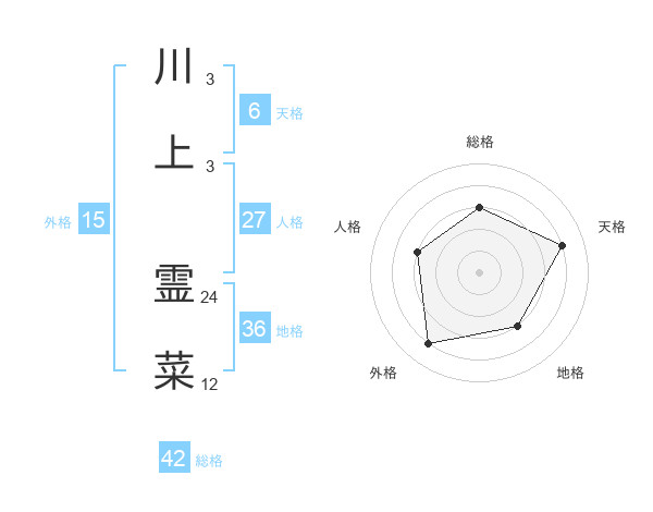 川上 霊菜さんを姓名の画数から五運を鑑定