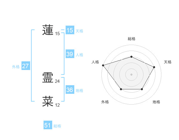 蓮 霊菜さんの総格は51画の3点!