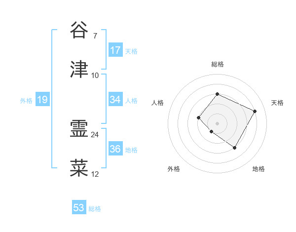 谷津 霊菜さんを姓名の画数から五運を鑑定