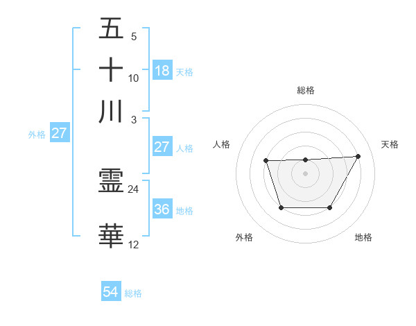 五十川 霊華さんを姓名の画数から五運を鑑定