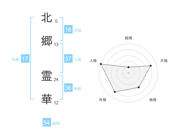 北郷 霊華さんの総格は54画の1点!