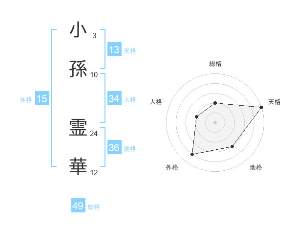 小孫 霊華さんの天格は13画の5点!