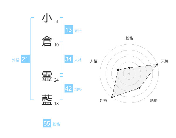 小倉 霊藍さんを姓名の画数から五運を鑑定
