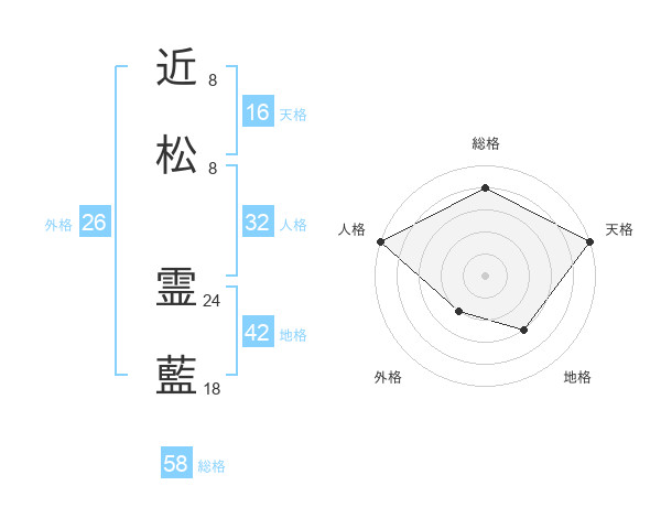 近松 霊藍さんを姓名の画数から五運を鑑定
