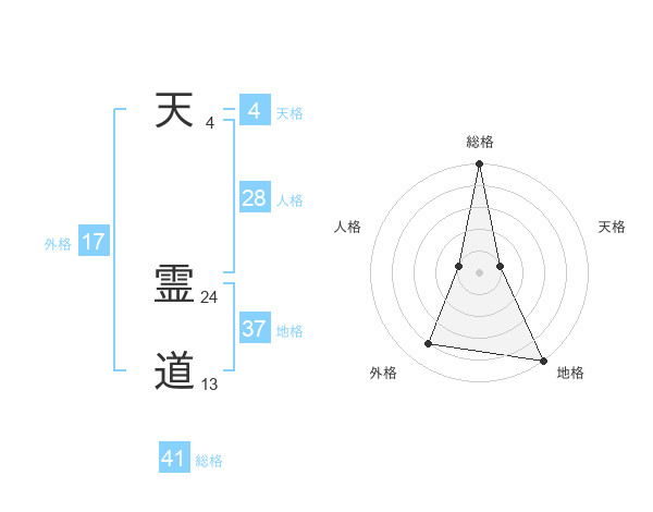 天 霊道さんの総格は41画の5点!