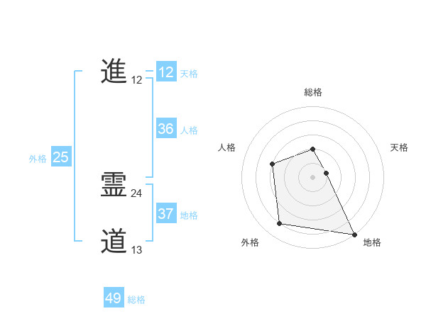 進 霊道さんの地格は37画の5点!