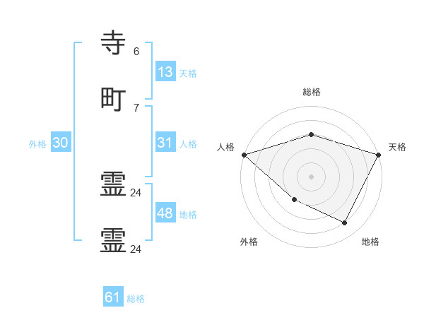 寺町 霊霊さんの総格は61画の3点!