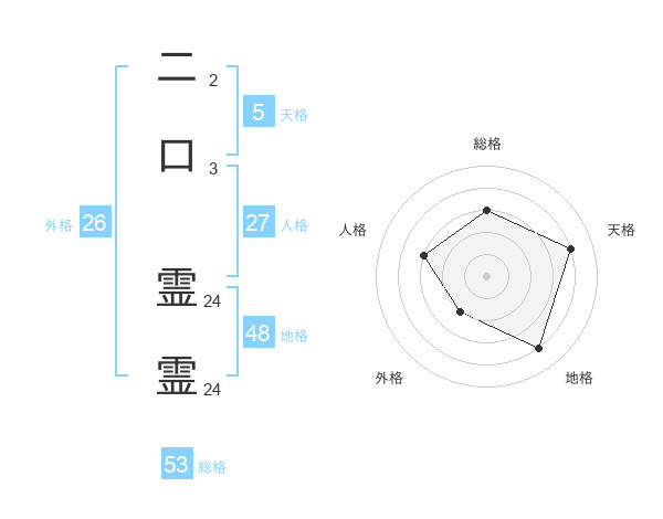 二口 霊霊さんを姓名の画数から五運を鑑定