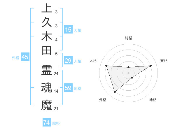 上久木田 霊魂魔さんを姓名の画数から五運を鑑定