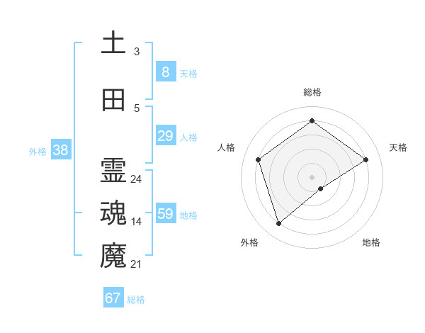 土田 霊魂魔さんを姓名の画数から五運を鑑定