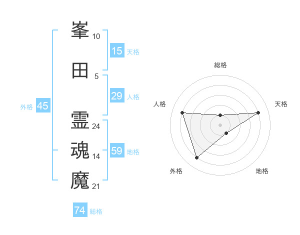 峯田 霊魂魔さんを姓名の画数から五運を鑑定