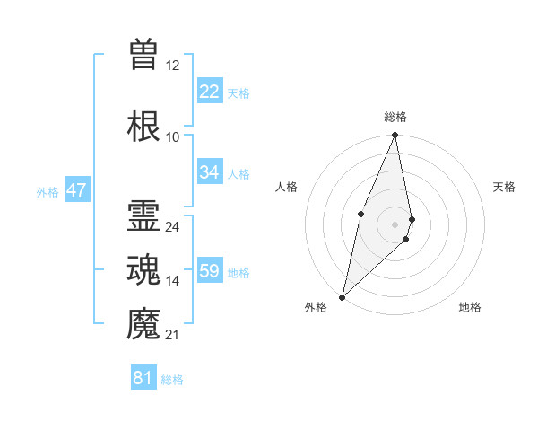曽根 霊魂魔さんの外格は47画の5点