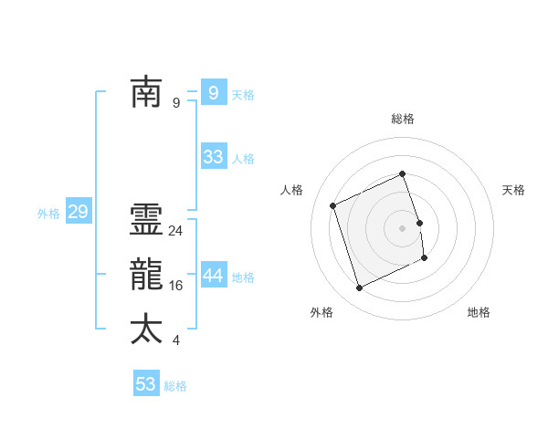 南 霊龍太さんの総格は53画の3点!