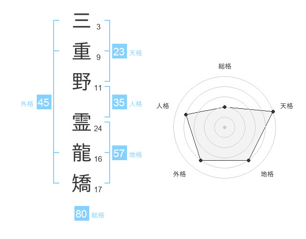 三重野 霊龍矯さんを姓名の画数から五運を鑑定