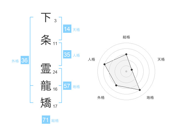 下条 霊龍矯さんを姓名の画数から五運を鑑定