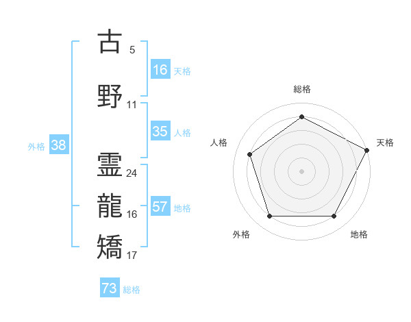 古野 霊龍矯さんを姓名の画数から五運を鑑定
