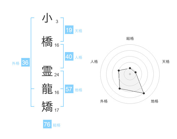 小橋 霊龍矯さんを姓名の画数から五運を鑑定