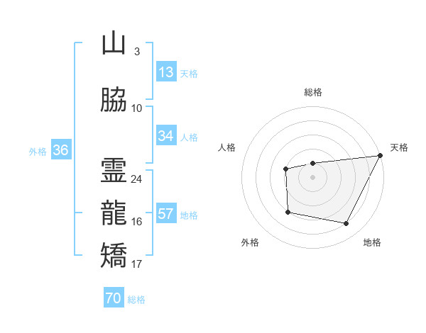 山脇 霊龍矯さんを姓名の画数から五運を鑑定