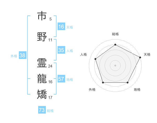 市野 霊龍矯さんを姓名の画数から五運を鑑定