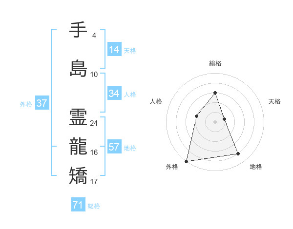 手島 霊龍矯さんを姓名の画数から五運を鑑定