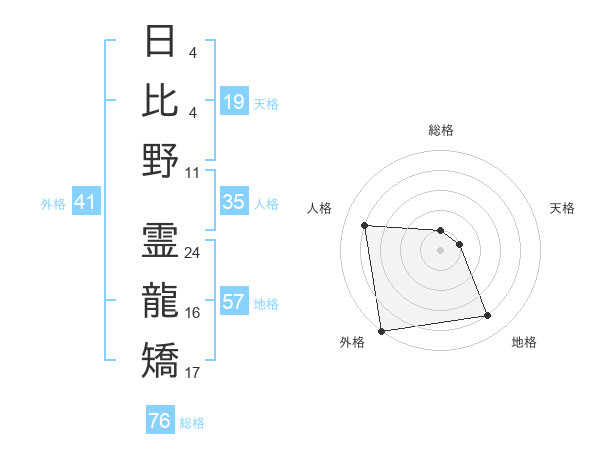 日比野 霊龍矯さんを姓名の画数から五運を鑑定