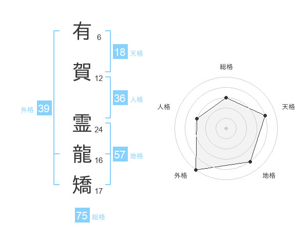 有賀 霊龍矯さんの総格は75画の3点!