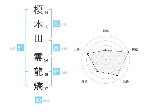 榎木田 霊龍矯さんの総格は80画の2点