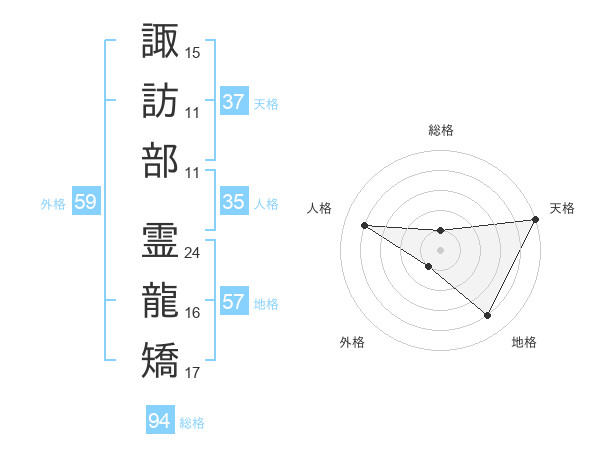諏訪部 霊龍矯さんの天格は37画の5点!