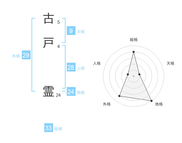 古戸 霊さんの総格は33画の4点!