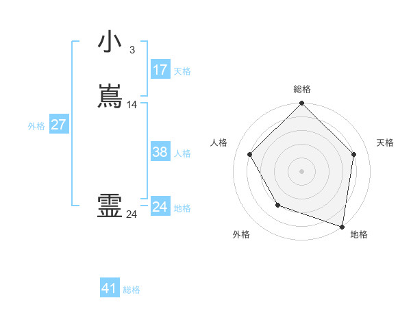 小嶌 霊さんの外格は27画の3点!