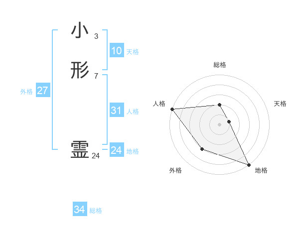 小形 霊さんの総格は34画の2点!