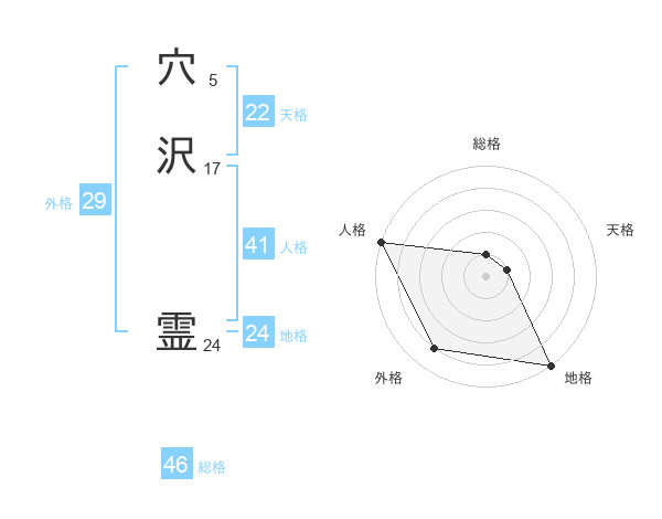 穴沢 霊さんの地格は24画の5点!