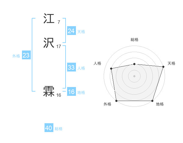 江沢 霖さんの外格は23画の5点!