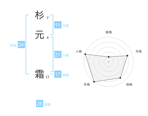 杉元 霜さんの外格は24画の5点!