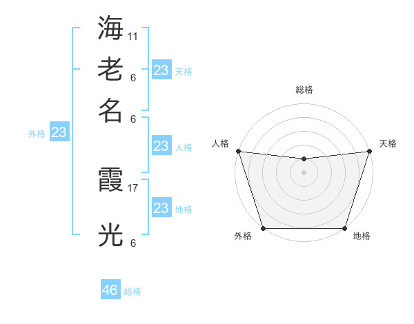 海老名 霞光さんの総格は46画の1点!