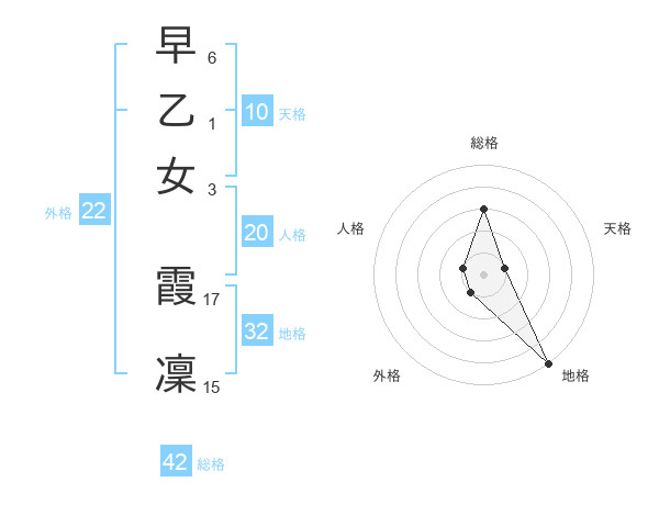 早乙女 霞凜さんを姓名の画数から五運を鑑定