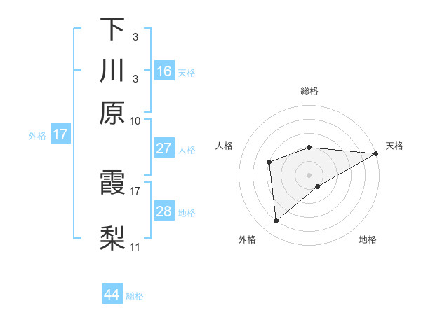 下川原 霞梨さんを姓名の画数から五運を鑑定