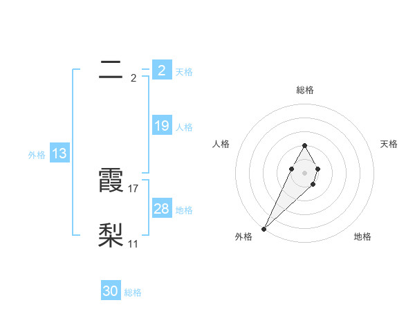 二 霞梨さんの外格は13画の5点!