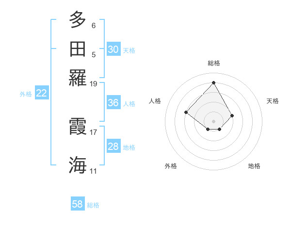 多田羅 霞海さんの総格は58画の4点!