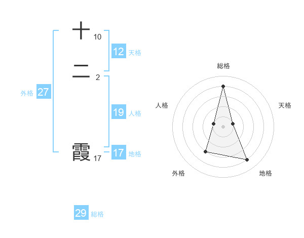 十二 霞さんの総格は29画の4点!