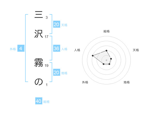三沢 霧のさんを姓名の画数から五運を鑑定